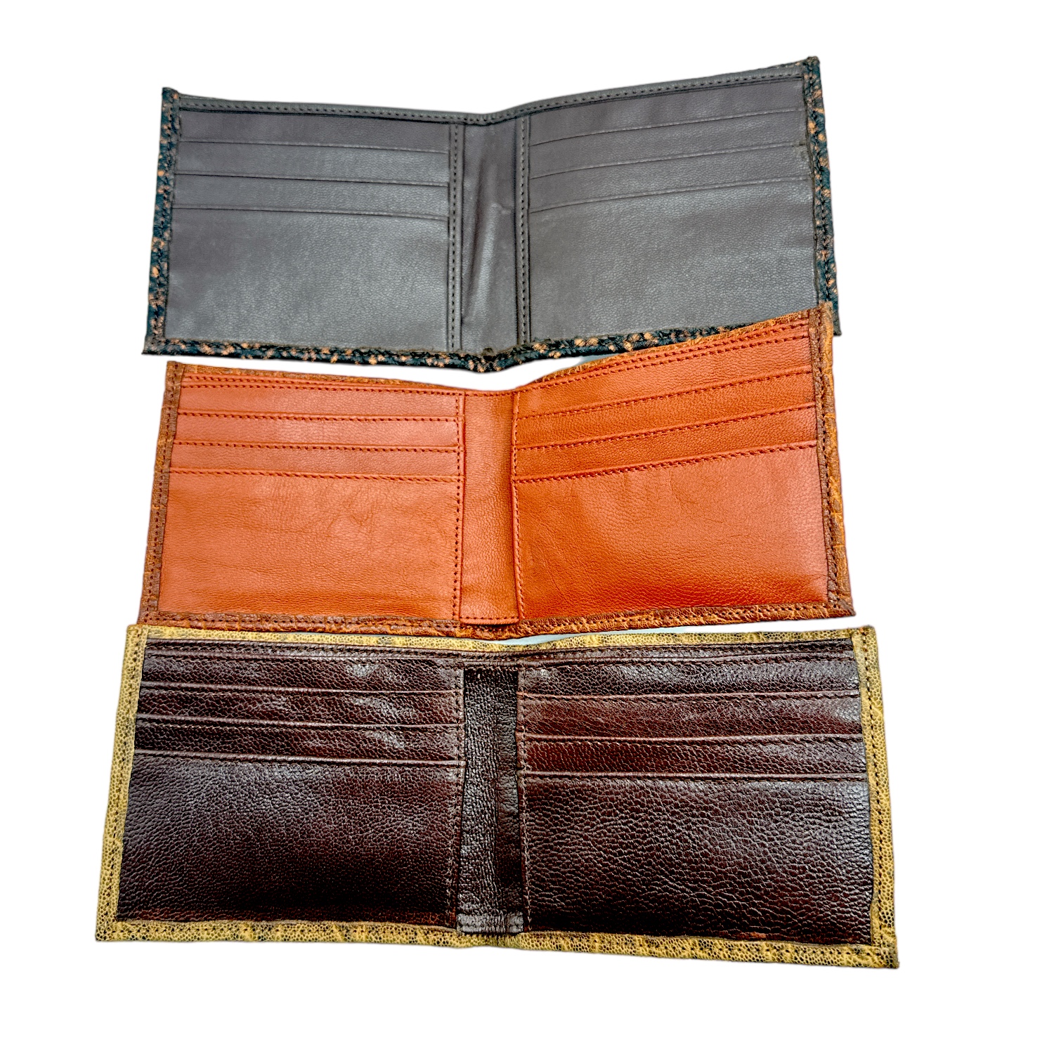 These wallets are made with beautiful authentic African Elephant leather that is tanned in a treebark pattern. It is stitched with heavy duty nylon thread that matches the color of the leather. Most feature 8 card slots and 2 bill slots, with some of the wallets having only 1 bill slot. Fully Opened they measure 8-1/2″ L and 4-3/8″ L closed. It is 3-3/8″ H.