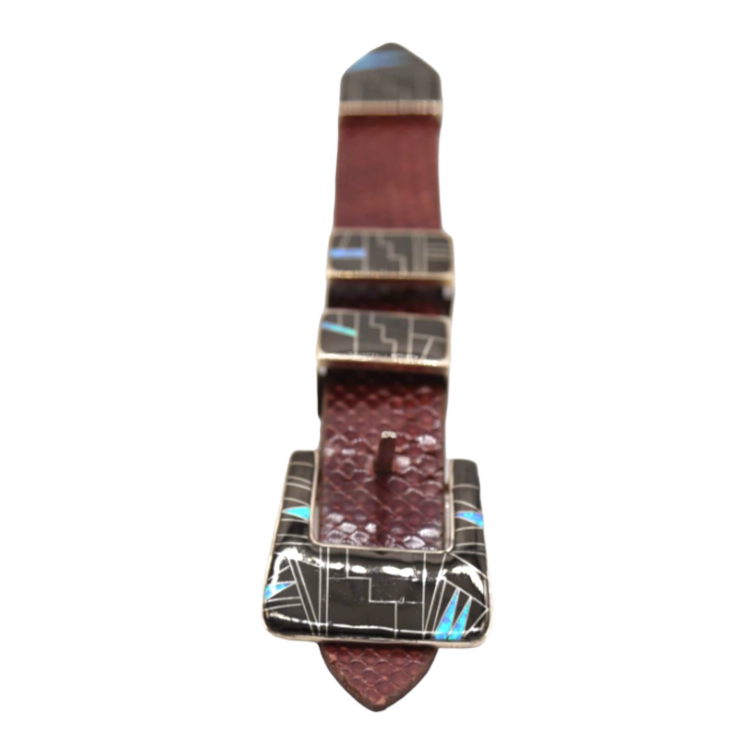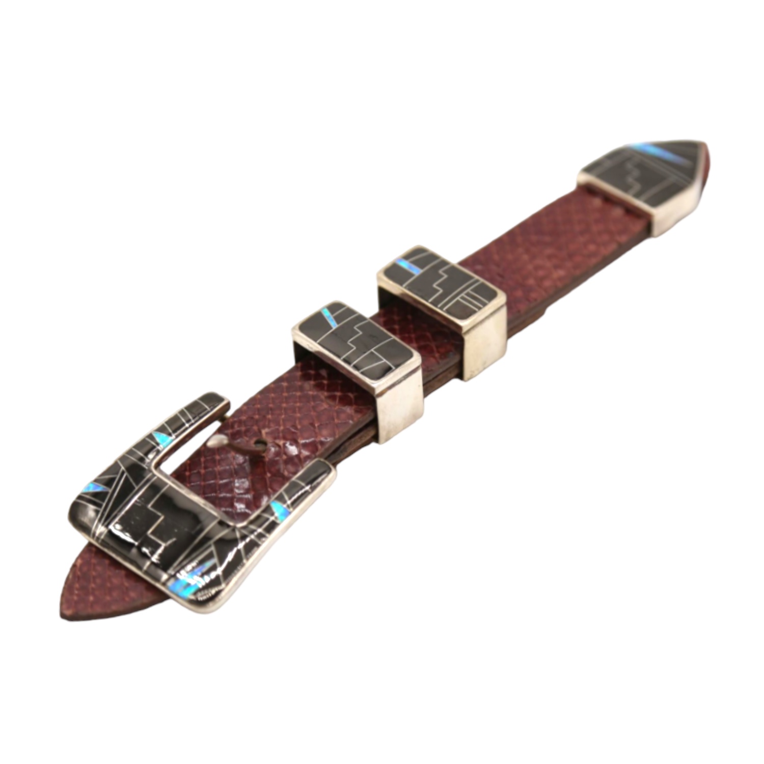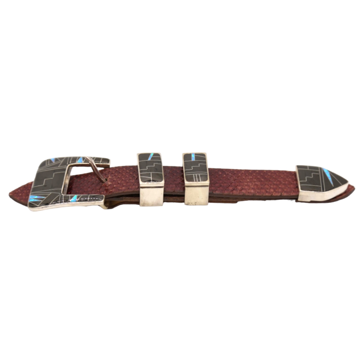 Sterling Silver, Opal, & Onyx 4pc. Ranger Design Belt Buckle Set